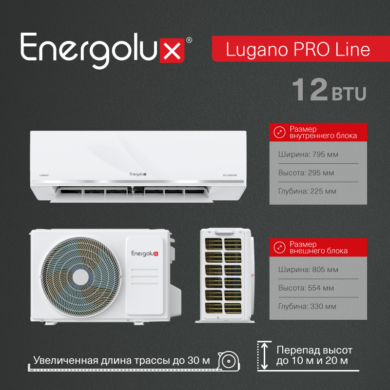 Серия Lugano Pro Line идеально подходит для регионов с нестабильным напряжением сети. Его уникальным преимуществом является стабильная работа в диапазоне напряжения от 80В до 264В (для моделей 9 и 12 мощности). Серия Lugano Pro Line характеризуется уверенной работой на обогрев при температуре наружного воздуха до -30°C. Для этого используется увеличенный теплообменник с высокопроизводительным компрессором с заводским подогревом картера компрессора и поддона наружного блока. Эта серия удобна для установки в местах, где не обойтись стандартной длиной фреонопровода. Максимальная длина между блоками допускается на расстоянии для 9 и 12 мощности – 25 м, для 18й – 30 м, а максимальный перепад высот составляет до 10 м и 20 м соответственно. Встроенный ионизатор последнего поколения может выделять в воздух до 2 миллионов положительных и отрицательных ионов. Они окружают и убивают бактерии, а затем превращают их в безвредные молекулы воды. Модели данной серии имеют Wi-Fi подготовку, высокий европейский класс энергоэффективности А+++ и антикоррозийное покрытие теплообменника Golden Fin, которое увеличивает срок службы кондиционера.